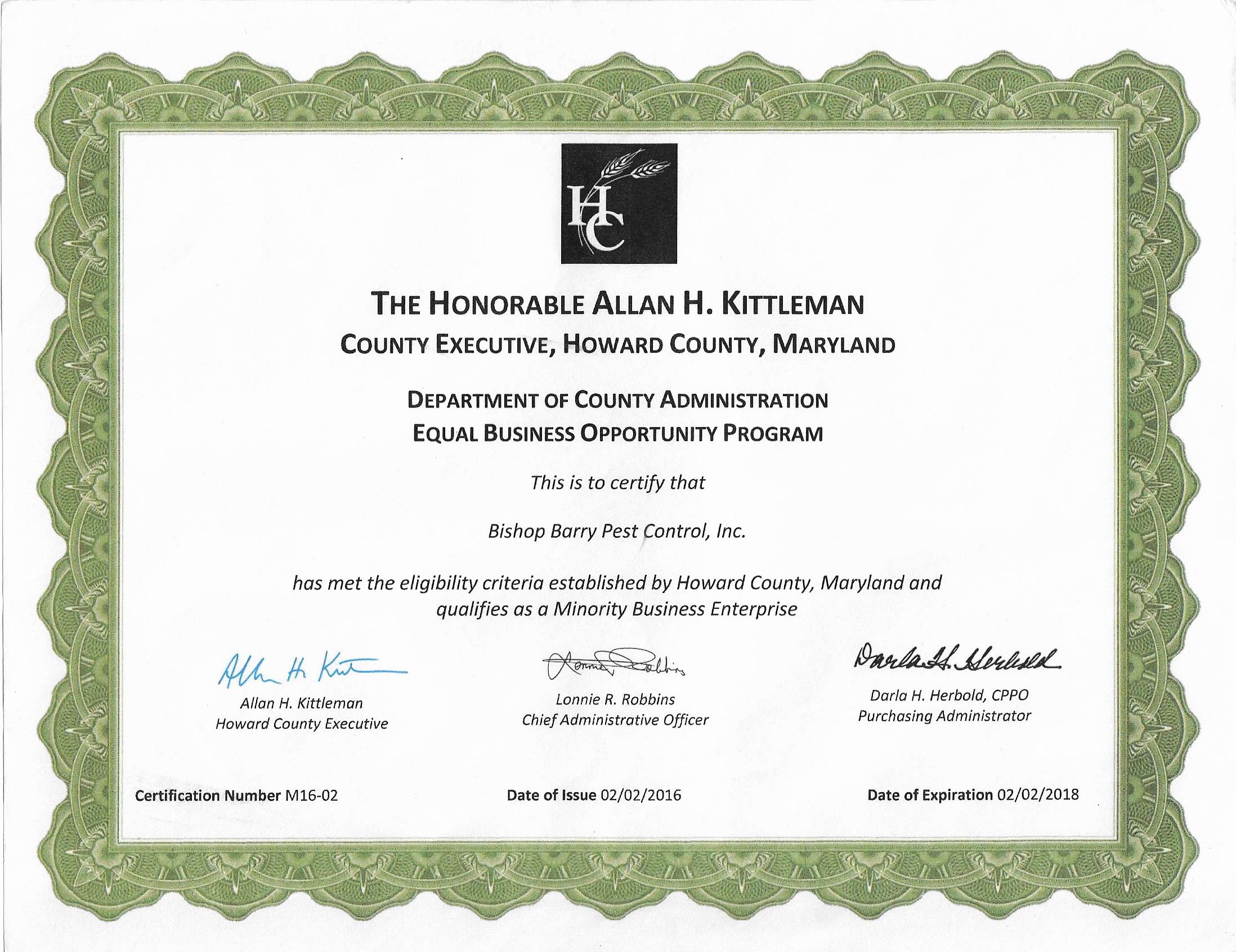 City of Baltimore, Minority Business Enterprise Certification #13-358416